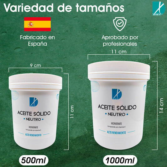Gran bote de 1 litro de aceite sólido de masaje, de la marca Desex, aunque también tenemos la opción del formato de 500 ml. Este bote es un bote plástico con rosca, para evitar derrames y que nos llega precintado con una pestaña de plástico.Este aceite cunde mucho, ya que solo debemos aplicar una pequeña cantidad y va absorbiendose conforme vamos aplicándolo.Está enriquecido con vitamina E y una de las cosas que más me gusta es que no tiene ningún aroma, esto para personas sensibles a los olores fuertes o densos en general es un alivio.Dudaba si llegaría en estado solido ya que en Córdoba con el calor que hace ya tenía mis dudas, pero si, llega sólido, que lo hace más sencillo y menos engorroso para hacer un masaje.Deja la piel hidratada y suave pero no pegajosa. Sale bien de precio este gran formato. Lo recomiendo.
